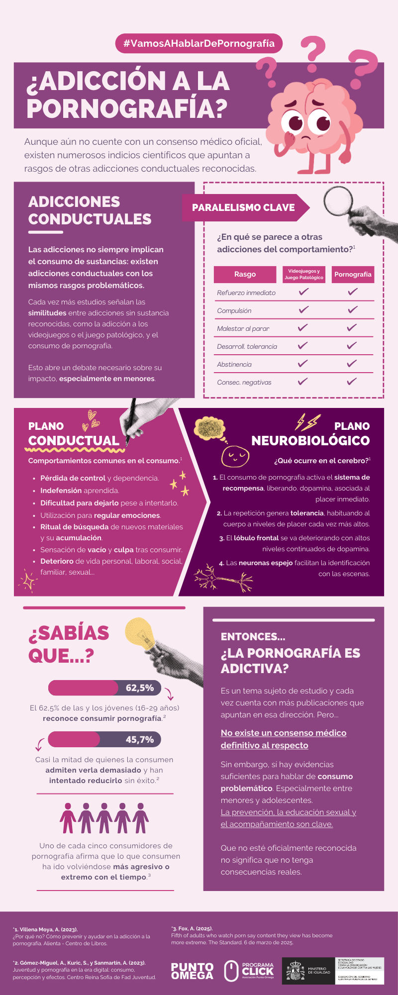 ⚠️ Todo esto resulta especialmente preocupante cuando el consumo comienza a edades tempranas y sin una educación afectivo-sexual previa. Que no exista aún un diagnóstico oficial no significa que no haya consecuencias reales, especialmente en adolescentes y jóvenes.